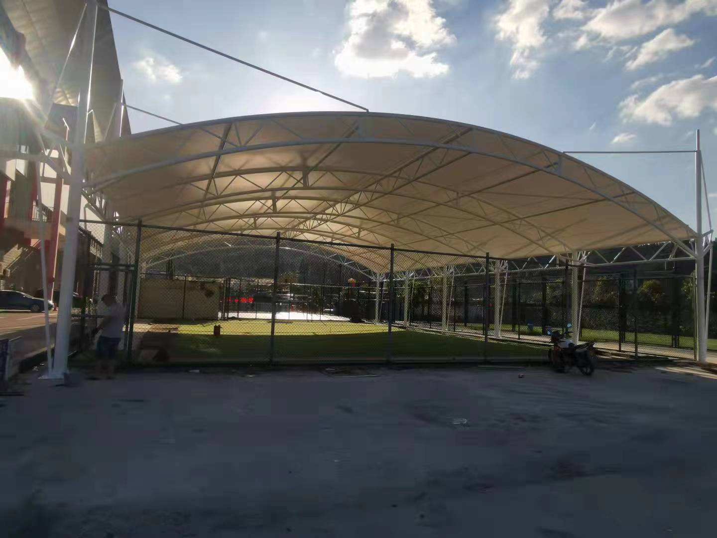 承接膜結(jié)構(gòu)景觀棚、膜結(jié)構(gòu)自行車車棚 、膜結(jié)構(gòu)交通設(shè)施 膜結(jié)構(gòu)停車棚、推拉篷 充電樁 候車廳 體育看臺 設(shè)施景的設(shè)計(jì)、生產(chǎn)、銷售、制作、安裝施工以及使用維護(hù)。